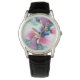 Uhr, Klassische Damenuhr mit schwarzen Lederarmband