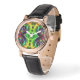 Uhr, Klassische Damenuhr mit schwarzen Lederarmband