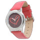 Kinderuhr aus Edelstahl mit rotem Lederarmband