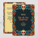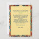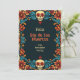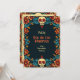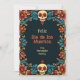 Die "Eternal Blossoms Tribute Card" ist eine flache Grußkarte der Dia de Muertos mit einem lebendigen Rahmen mit Blumenmustern und Schädelmotiven in Farben wie Blau, Orange und Rot auf dunklem Hintergrund. Auf der Kartenvorderseite wird der Text "Feliz Dia de Los Muertos" in einem großen, stilisierten Schriftart angezeigt, gefolgt von "von [individuelle Name]", wo der Name des Absenders personalisiert werden kann. Die Rückseite der Karte bietet Platz für eine benutzerdefinierte Nachricht und setzt den gleichen dekorativen Rahmen und Hintergrund wie die Vorderseite für visuelle Konsistenz.