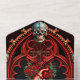 Ewige Liebe im Schatten der Rose. Das Design besticht durch einen atemberaubenden Gotischen Bogen, der in einem tiefen, romantischen Rottönen glänzt. An den Seiten des Bogens sind drei stilisierte Schädel platziert, die jeweils hellblaue Augen haben und die ewige Verbindung und ewige Liebe symbolisieren. Die Rose sind in voller Blüte und strahlen eine warme, einladende Energie aus. Das Herz ist sehr detailliert mit sichtbaren Venen und Arterien dargestellt. Das Design verkörpert nicht nur die Schönheit der Liebe, sondern auch die Kraft und Dauerhaftigkeit einer Beziehung.