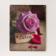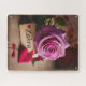 Dieses faszinierende, Vintag inspiriert Puzzle-Design zeichnet sich durch eine atemberaubende lila und rosa Rose aus, die Blütenblätter glitzern mit glitzernden Wassertropfen unter einem warmen, zarten Licht.