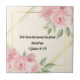 Diese Keramik Kachel zeichnet sich durch ein elegantes und dekoratives Design aus. Es hat ein weiches Blumenmuster mit zarten rosa Rosen und üppigen grünen Blätter, die an den oberen und unteren links Ecken eine Touch von Wärme und Charme verleihen. Die geometrisch goldenen Linien bilden einen ausgeklügelten quadratischen Rahmen um den zentralen Text herum und verleihen der Kachel ein künstlerisches und raffiniertes Aussehen. Der in der Mitte eingeschriebene Text lautet: "Wir Liebe, weil er uns zum ersten Mal geliebt hat" 1 John 4:19 Dieser Vers vermittelt eine Botschaft des Glaubens und der Liebe und macht die Kachel nicht nur zu einem schönen dekorativen Stück, sondern auch zu einer sinnvollen Erinnerung spiritueller Hingabe. Die Kombination aus Blumenelementen, Goldakzenten und herzlicher Schrift schafft ein harmonisches Design, das sich ideal für die Darstellung in einer Zuhause oder religiösen Umgebung eignet.
