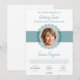 Ehren Sie Ihren Verstorbenen mit dieser eleganten und anpassbaren Vorlage für eine Trauerfeier. Mit einer zeitlosen Farbpalette in Teal und Weiß, einem runden Portraitrahmen und anspruchsvoller Typografie ermöglicht dieses leicht zu bearbeitende Layout die Personalisierung von Details zur Trauerfeier, Daten und herzlichen Tributen. Erstellen Sie ein professionelles, hochwertiges Andenken, das ein schönes Leben würdevoll feiert und Familie und Freunden während der Trauerfeier eine sinnvolle Orientierung bietet.