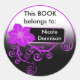 Ex-Libris-Aufkleber (floral lila) Runder Aufkleber