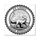 Ein stilvolles Ex Libris Design mit Dinosaurier. Text in einem äußeren Kreis, mit einer kühnen Zahnkante. Ändern Sie den Namen zum Anpassen.