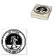 Ein stilvolles Ex Libris Design mit einem Astronauten, der auf dem Mond spaziert. Weiße Umgebung für Text, Entworfen, um ähnlich wie ein Dekcal/Patch für eine Weltraummission auszusehen. Ändern Sie den Namen zum Anpassen.