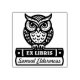 Eine Ex Libris Gummi Briefmarke mit einer kleinen Eule sitzt auf und bewacht zwei Bücher. Ex Libris Text auf dem obersten Buch mit anpassbarem Namenstext auf dem unteren Buch in stylish Skript.