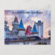 Postkarte mit dem Excalibur Hotel und Monorail am Las Vegas Strip in einem bewölkten Tag mit vielen architektonischen Details schöne Wolken. Der Text ist vollständig anpassbar.