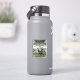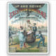Circa 1885 - Werbung für Ginger Ale mit Ballon und Korb mit schwarzen Begleitern. Zwei Frauen trinken Excelsior Ginger Ale, was impliziert, dass der Kohlenstoff hilft der Ballon zu steigen. Bild von zwei modisch gekleideten Frauen in schlanken, langen Kleider und Knöcheln, die auf einer Heißluftballonfahrt starten, eine steht im Korb und hält ein spitzengeätztes Taschentuch mit einem senfliegenden Ballonfahrer mit Fernglas und einem Monokel, die andere sippt eine Insignatur aus Glas, während sie beginnt, eine Seilleiter in das Handwerk zu steigen; zwei afroamerikanische Männer mit Gale Ein großer Menschenmassen beobachtet das Spektakel hinter einem weißen Holzzaun, der mit Werbeslogans bemalt ist