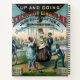 Circa 1885 - Werbung für Ginger Ale mit Ballon und Korb mit schwarzen Begleitern. Zwei Frauen trinken Excelsior Ginger Ale, was impliziert, dass der Kohlenstoff hilft der Ballon zu steigen. Bild von zwei modisch gekleideten Frauen in schlanken, langen Kleider und Knöcheln, die auf einer Heißluftballonfahrt starten, eine steht im Korb und hält ein spitzengeätztes Taschentuch mit einem senfliegenden Ballonfahrer mit Fernglas und einem Monokel, die andere sippt eine Insignatur aus Glas, während sie beginnt, eine Seilleiter in das Handwerk zu steigen; zwei afroamerikanische Männer mit Gale Ein großer Menschenmassen beobachtet das Spektakel hinter einem weißen Holzzaun, der mit Werbeslogans bemalt ist