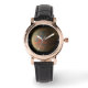 Uhr, Klassische Damenuhr mit schwarzen Lederarmband