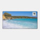 Schreibtischmatte mit Foto eines Strandes auf der griechischen Insel Kreta. Ein schöner tropisch blauer Strand mit schäumendem Surfen. Wunderschönes ruhiges Reiseziel.