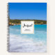Spiralheft mit Foto eines Strandes auf der griechischen Insel Kreta. Ein schöner tropisch blauer Strand mit schäumendem Surfen. Wunderschönes ruhiges Reiseziel.