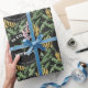 Dieses verspielte und exotische Dschungelpackpapier "Go Bananas!" mit handgezückten gelben Bananenbunken und tropisch grünen Bananenbänken-Blätter auf einem fast schwarzen Hintergrund mit subtilen Raintrop-Details in dunkelgrau. Personalisieren Sie mit einem Heading (glücklich Geburtstag, glücklicher Jahrestag, Glückwunsch, etc.) und Ihrem Namen.