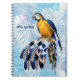 Ein Traumfänger, der den runden Kreis von Bambus und roten Perlen im Web mit blauen exotischen Papagei-Vogelfedern auf einem weichen Blues Feather Hintergrund Hochzeitsthema beinhaltet