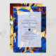 Die Einladung der Engagement-Partei mit einem Dschungelmuster in den Farben Blau, Bordeaux und Gold.