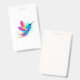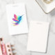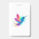 Heller, schillernder, exotischer, fliegender Kolibri auf weißem Hintergrund, übermalt mit mehrfarbiger Aquarellfarbe. Regenbogen-Kolibri.