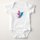 Heller, schillernder, exotischer, fliegender Kolibri auf weißem Hintergrund, übermalt mit mehrfarbiger Aquarellfarbe. Regenbogen-Kolibri.