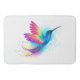 Heller, schillernder, exotischer, fliegender Kolibri auf weißem Hintergrund, übermalt mit mehrfarbiger Aquarellfarbe. Regenbogen-Kolibri.