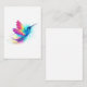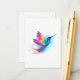 Heller, schillernder, exotischer, fliegender Kolibri auf weißem Hintergrund, übermalt mit mehrfarbiger Aquarellfarbe. Regenbogen-Kolibri.