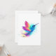 Heller, schillernder, exotischer, fliegender Kolibri auf weißem Hintergrund, übermalt mit mehrfarbiger Aquarellfarbe. Regenbogen-Kolibri.