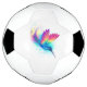 Heller, schillernder, exotischer, fliegender Kolibri auf weißem Hintergrund, übermalt mit mehrfarbiger Aquarellfarbe. Regenbogen-Kolibri.