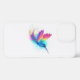 Heller, schillernder, exotischer, fliegender Kolibri auf weißem Hintergrund, übermalt mit mehrfarbiger Aquarellfarbe. Regenbogen-Kolibri.