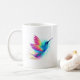 Bright, iridescent, exotic flying hummingbird on white background, painted over with multicolor, watercolor paint. Rainbow hummingbird.