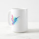 Heller, schillernder, exotischer, fliegender Kolibri auf weißem Hintergrund, übermalt mit mehrfarbiger Aquarellfarbe. Regenbogen-Kolibri.