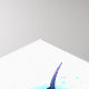 Heller, schillernder, exotischer, fliegender Kolibri auf weißem Hintergrund, übermalt mit mehrfarbiger Aquarellfarbe. Regenbogen-Kolibri.