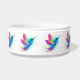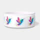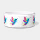 Heller, schillernder, exotischer, fliegender Kolibri auf weißem Hintergrund, übermalt mit mehrfarbiger Aquarellfarbe. Regenbogen-Kolibri.