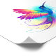 Heller, schillernder, exotischer, fliegender Kolibri auf weißem Hintergrund, übermalt mit mehrfarbiger Aquarellfarbe. Regenbogen-Kolibri.