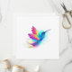 Heller, schillernder, exotischer, fliegender Kolibri auf weißem Hintergrund, übermalt mit mehrfarbiger Aquarellfarbe. Regenbogen-Kolibri.