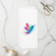 Heller, schillernder, exotischer, fliegender Kolibri auf weißem Hintergrund, übermalt mit mehrfarbiger Aquarellfarbe. Regenbogen-Kolibri.