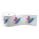Heller, schillernder, exotischer, fliegender Kolibri auf weißem Hintergrund, übermalt mit mehrfarbiger Aquarellfarbe. Regenbogen-Kolibri.