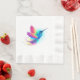 Heller, schillernder, exotischer, fliegender Kolibri auf weißem Hintergrund, übermalt mit mehrfarbiger Aquarellfarbe. Regenbogen-Kolibri.