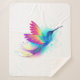 Bright, iridescent, exotic flying hummingbird on  white background, painted over with multicolor, watercolor paint. Rainbow hummingbird.