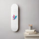 Heller, schillernder, exotischer, fliegender Kolibri auf weißem Hintergrund, übermalt mit mehrfarbiger Aquarellfarbe. Regenbogen-Kolibri.