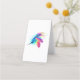 Heller, schillernder, exotischer, fliegender Kolibri auf weißem Hintergrund, übermalt mit mehrfarbiger Aquarellfarbe. Regenbogen-Kolibri.
