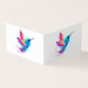 Heller, schillernder, exotischer, fliegender Kolibri auf weißem Hintergrund, übermalt mit mehrfarbiger Aquarellfarbe. Regenbogen-Kolibri.