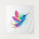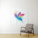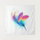Heller, schillernder, exotischer, fliegender Kolibri auf weißem Hintergrund, übermalt mit mehrfarbiger Aquarellfarbe. Regenbogen-Kolibri.
