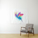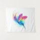 Heller, schillernder, exotischer, fliegender Kolibri auf weißem Hintergrund, übermalt mit mehrfarbiger Aquarellfarbe. Regenbogen-Kolibri.