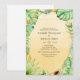 Sommerveranstaltung mit reichlich tropischer Vegetation, Strelitzia-Blume, einem Toucan-Vogel, Ananas, Eis und einem geometrischen Rahmen.