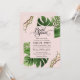 Mit dieser exotischen tropischen Palmeneinladung Set man den Ton für ein traumhaftes Brautparty am Strand. Mit üppig grünen Bananenpalmen-Blätter, Farnen und botanischer Vegetation vor einem sanften, rosa Hintergrund, verleiht dieses Design Ihrem Fest ein frisches und tropisches Ambiente.