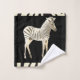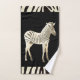 Ein exotischer Zebra im schwarzen Hintergrund und Zebrastreifen zum Kontrast. Afrikanisches Exotik, wilde Lebensformen.