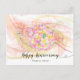 Schöner und abstrakter Rauch und Wirbel mit eleganten und exotischen Blume in Rosa und Gelb. Künstlerische Farbkombination in sanften Gelb-, Grün- und Rosatönen und ein Kalligraphieskript Happy Anniversary. Anpassen, indem Sie den Text ändern oder auf Anpassen klicken, um Ihre eigene Touch hinzuzufügen.