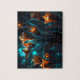 Exotische Vivid Wild Nature Blume im Moonlight-Puzzle. Dieses digitale Kunstwerk zeigt eine faszinierende Szene eines zauberhaften Gartens, der im Mondlicht im sanften Licht badet. Der Fokus liegt auf einer Reihe von lebhaften orangefarbenen Blume, möglicherweise Zinnien oder Gänseblümchen, umgeben von einer Menge leuchtender Fliegen. Ein mysteriöses, ätherisches Licht, das das zauberhafte Ambiente der Szene noch verstärkt. Im Hintergrund flattert mehr Licht zwischen Glitzern und glühenden Orben, was ein Gefühl von Tiefe und Wunder schafft. Die Farbpalette reich an Blues und warmen Orangen, zusammen mit den funkelnden Effekten, erinnert an eine traumhafte, andere Welten-Atmosphäre, die die Schönheit und Ruhe der Natur in der Nacht erweckt
