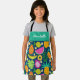 Das ist eine personalisierte Schürze für Kinder mit niedlichen, bunten tropischen Früchten mit Ananas, Papaya, Drachenfrucht, Mango, Banane, Wassermelone und Zitrone mit tropischen Blätter im dunklen Hintergrund. Sie können den Namen auf der Schürze ändern, indem Sie die Schaltfläche Personalisieren verwenden.