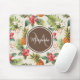 Eine exotische tropische Ananas Blumenmousepad, die personalisiert sein kann. Fügen Sie Ihren Namen und mit Monogramm Initialen in das dunkelbraune, abgerundete Hexagon-Abzeichen, um es einzigartig zu machen. Dies ist Teil der Tropischen Ananas Floral Emperador Monogram Collection.